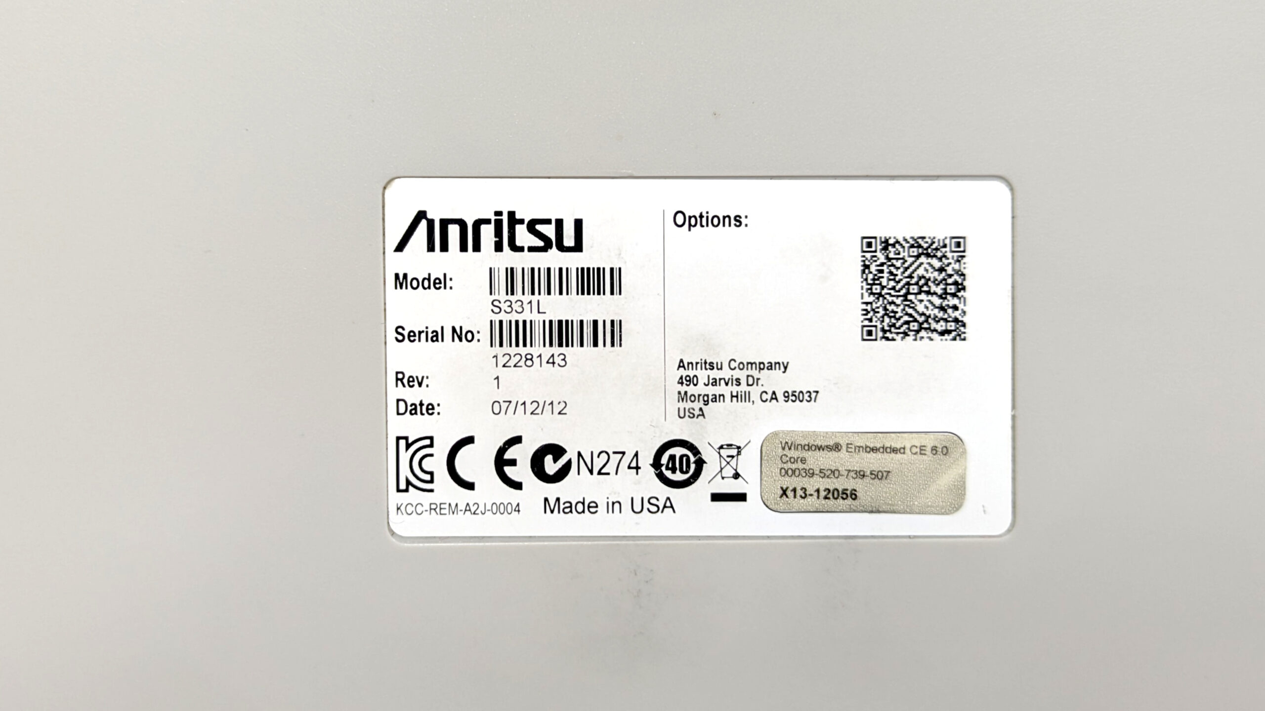 Manufacturer name: a,Anritsu