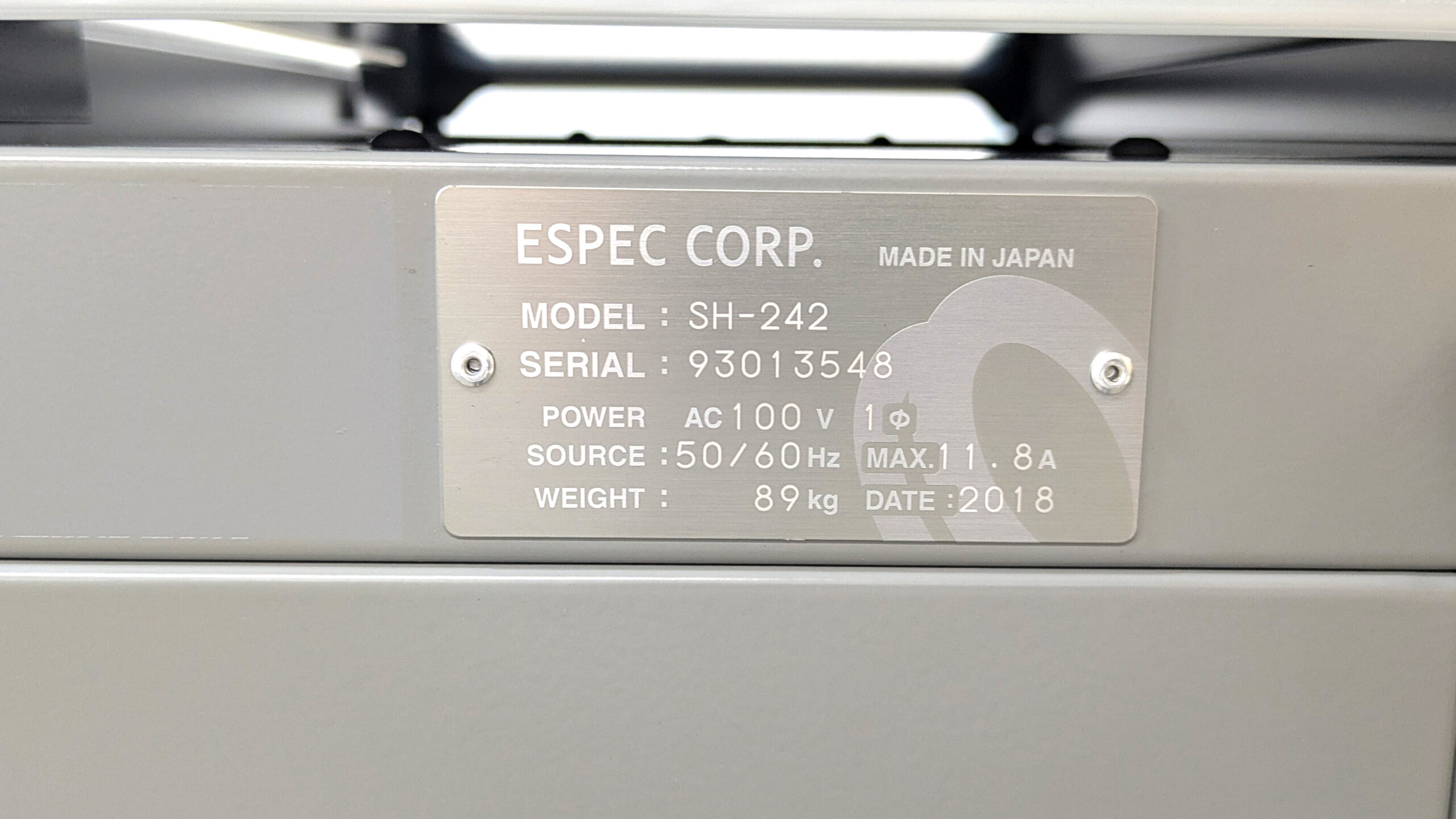 SH-242 Bench-Top Constant Temperature and Humidity Chamber with Stand ESPEC S/N: 93013548